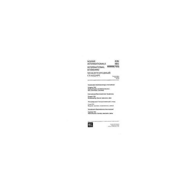 IEC 60050-723 Ed. 1.0 t:1997 International Electrotechnical Vocabulary (IEV) - Part 723: Broadcasting: Sound, television, data