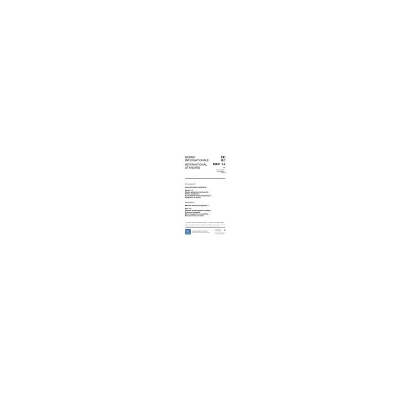 IEC 60601-1-2 Amd.1 Ed. 2.0 b:2005 Amendment 1 - Medical electrical equipment - Part 1-2: General requirements for safety - Collateral standard: Electromagnetic compatibility - Requirements and tests